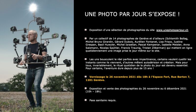 Le Prof. Michel Girardin est le coordinateur de cette exposition et co-fondateur du site www.unephotoparjour.ch, il y a plus de 15 ans ! Il accueillera volontiers celles et ceux d’entre-vous qui souhaiteraient avoir une visite privée de l’exposition dès 17h le 26 novembre, soit 1h avant l’ouverture officielle du vernissage.